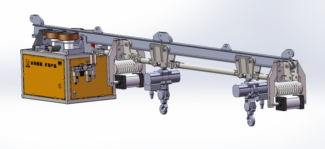 氣動單軌吊車是該公司自主研發(fā)的一種專業(yè)節(jié)能環(huán)保、多功能、高效率的創(chuàng)新產(chǎn)品。采用壓縮空氣作為動力源,它具有安全、清潔和無污染的特點,并內(nèi)置懸吊單軌系統(tǒng),不受底板條件限制,具備卓越的通過能力。該產(chǎn)品廣泛適用于煤礦井下、公路隧道、鐵路隧道等特殊環(huán)境,可完成巷道中大型設(shè)備的組裝、拆卸以及物料的短途運輸。